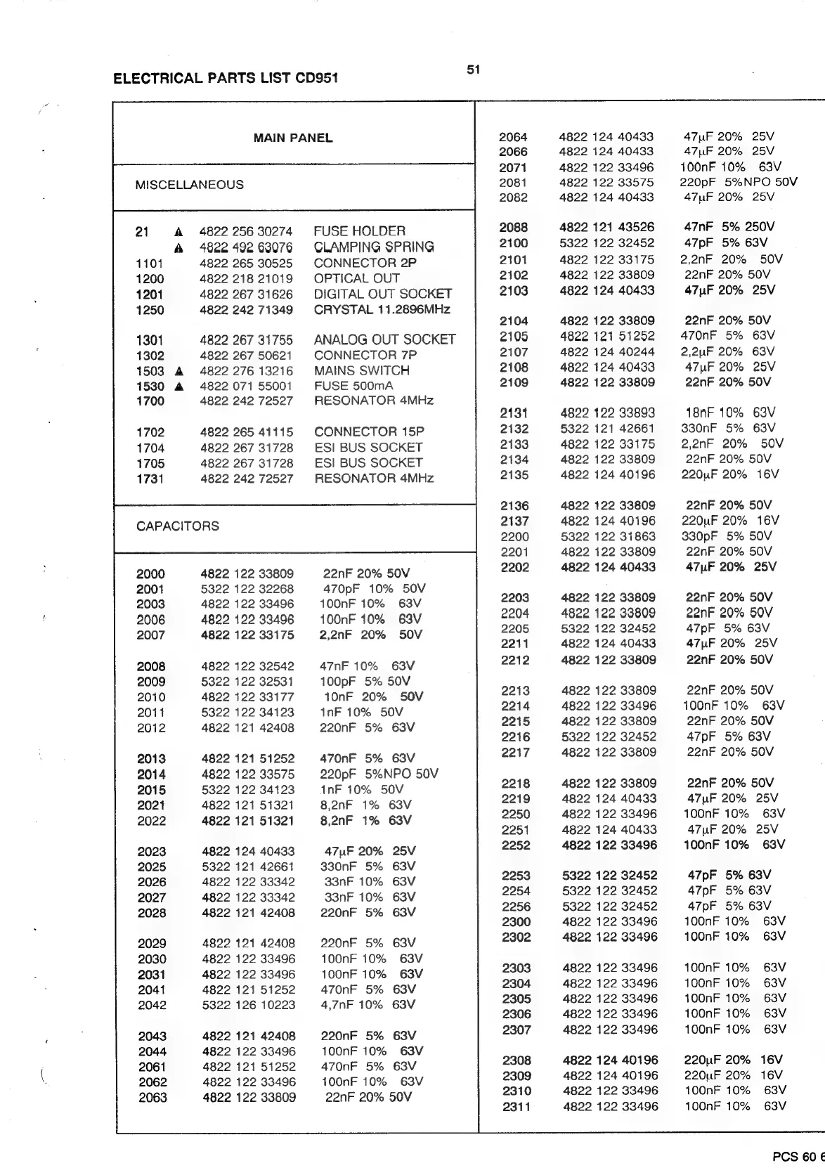 Philips CD950 - Electrical Partslist