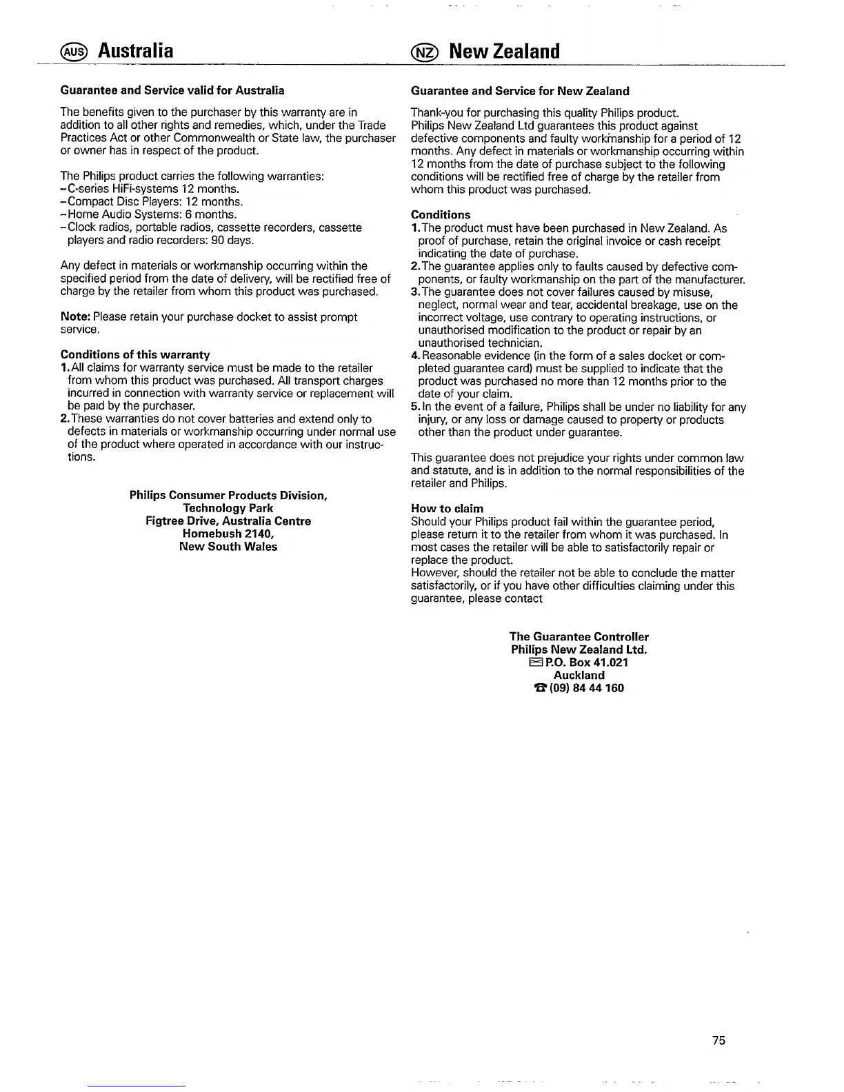 Philips CD951 - Warranty Information; Australian Warranty and Service; New Zealand Warranty and Service