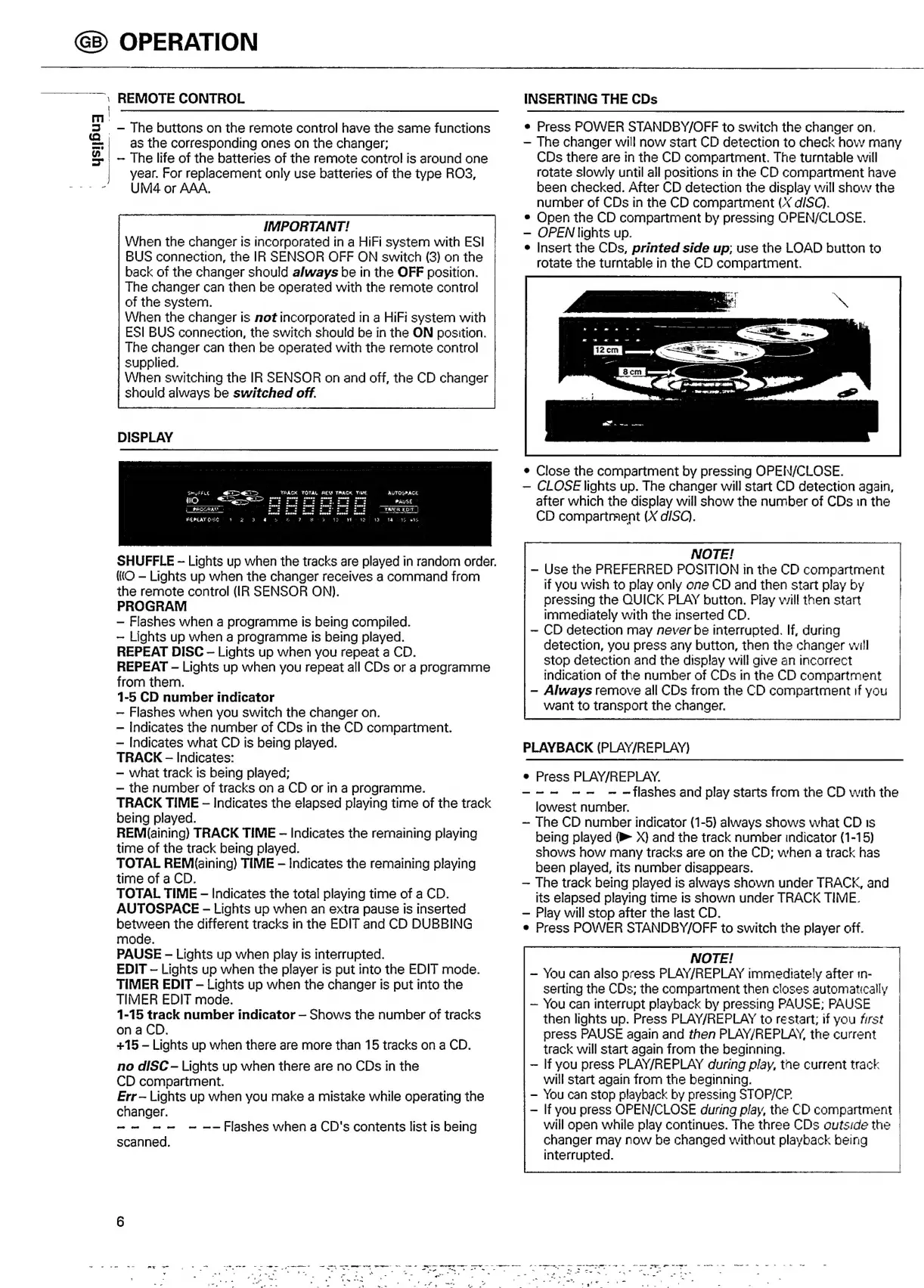 Philips CDC 925 - Inserting CDs; Playback Operations