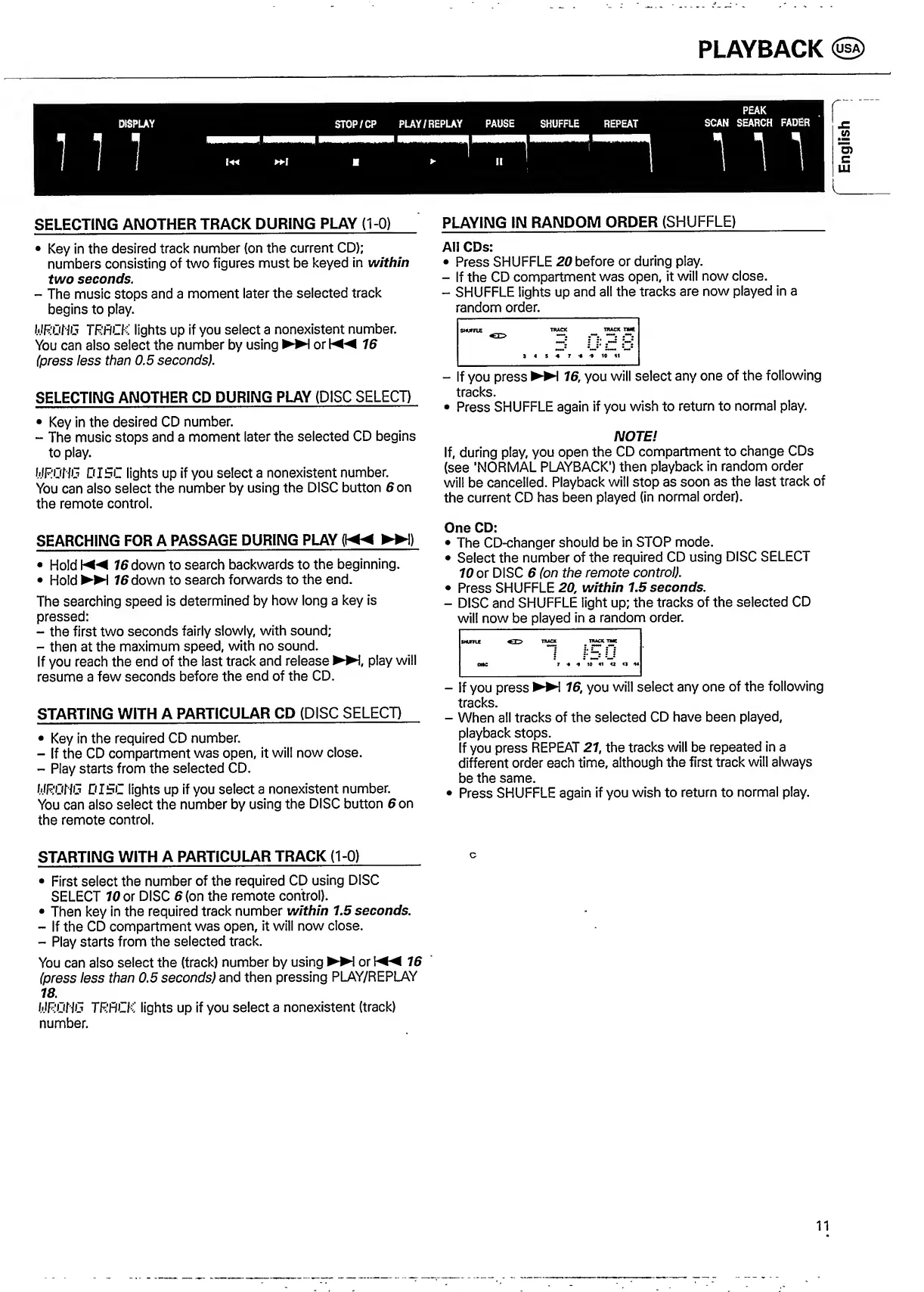 Philips CDC 936 - Selecting for Another Track During Play; Selecting Another CD During Play; Searching for a Passage During Play; Starting with a Particular CD