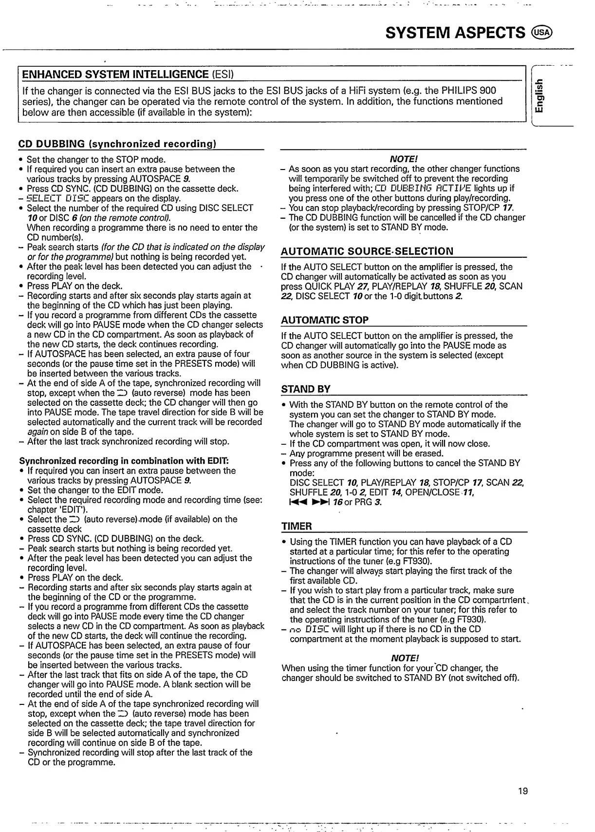 Philips CDC 936 - System Aspects; Enhanced System Intelligence (ESI); CD Dubbing (Synchronized Recording); Automatic Source Selection