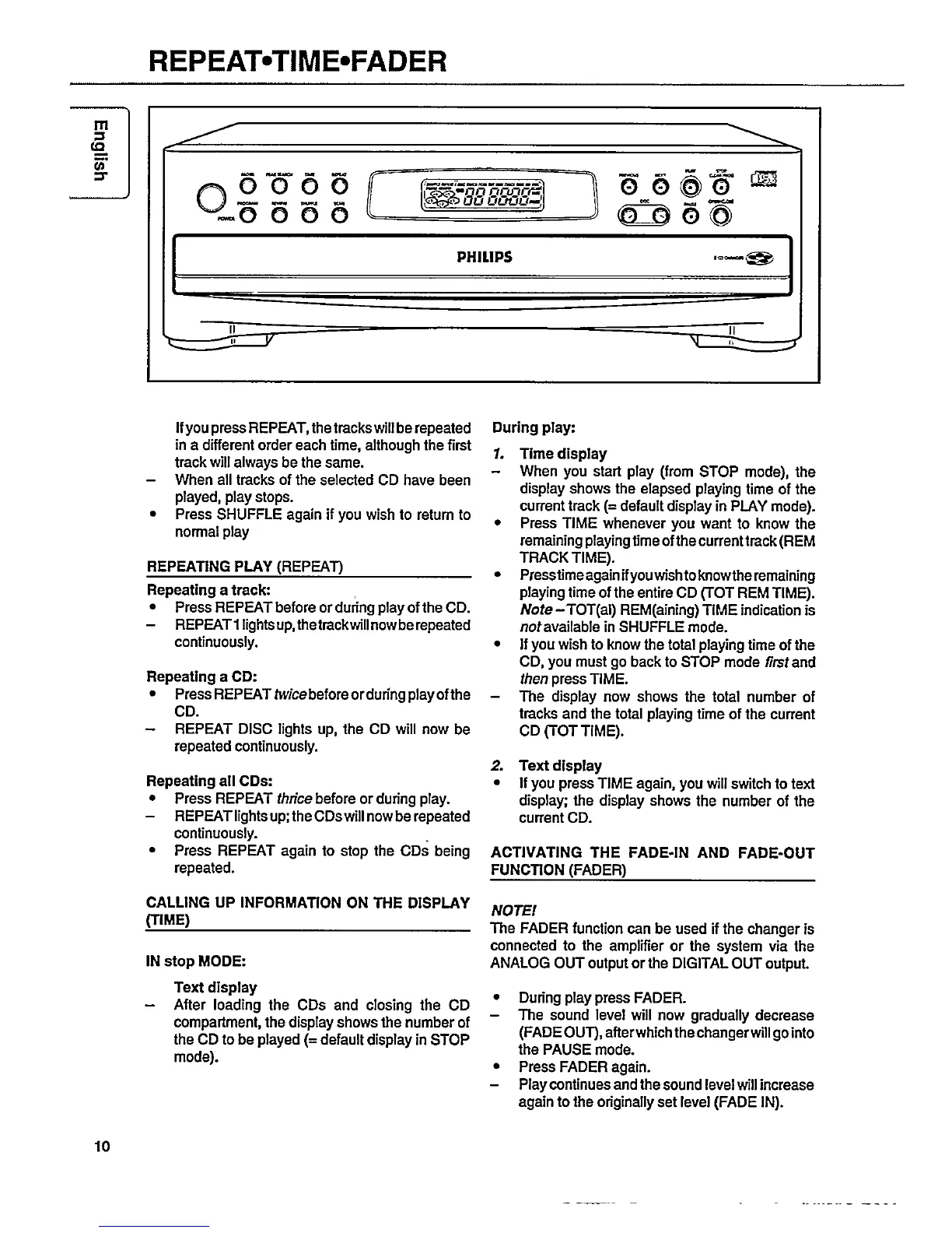 Philips CDC265/01 - Repeat, Time, and Fader Functions; Repeat Playback Modes; Displaying Time Information; Fade-In;Fade-Out Function