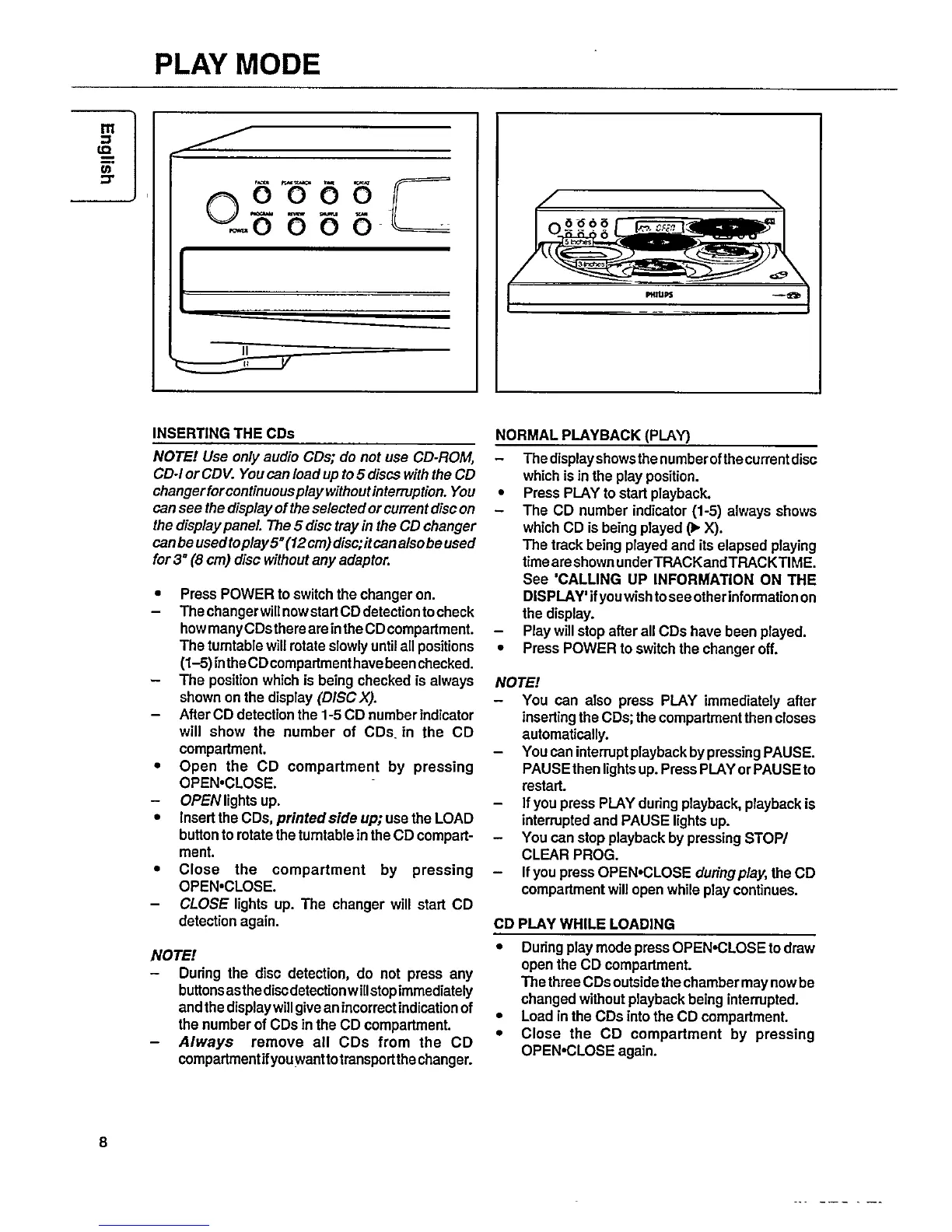 Philips CDC265/01 - Play Modes; CD Insertion and Loading; Normal Playback; CD Play While Loading