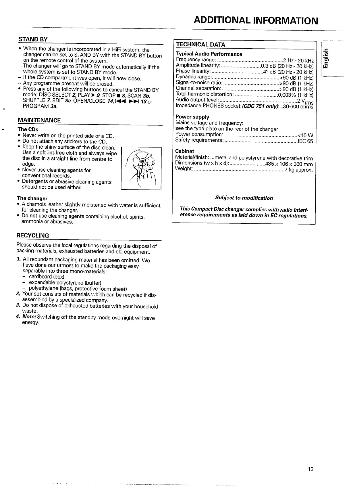 Philips CDC741 - ADDITIONAL INFROMATION