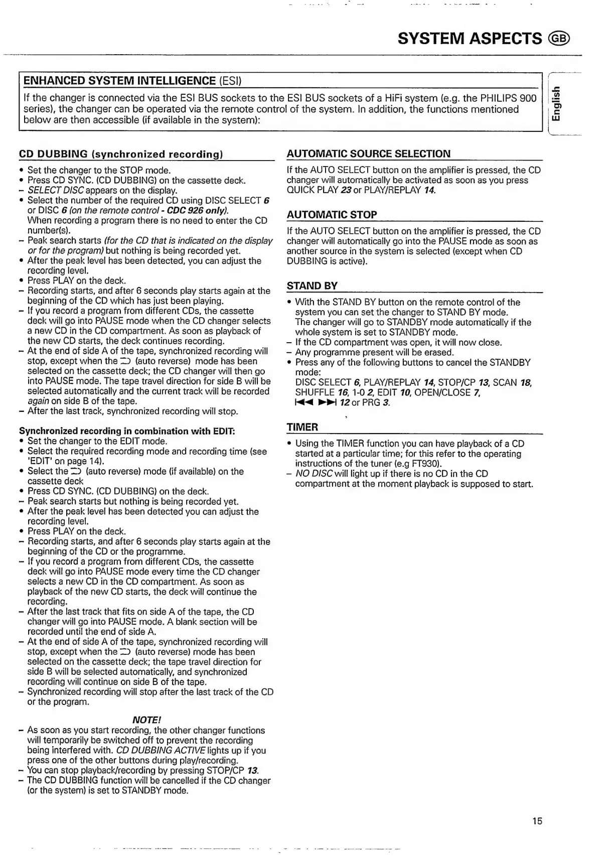 Philips CDC926 - System Aspects; Enhanced System Intelligence; CD Dubbing (Synchronized Recording); Automatic Source Selection