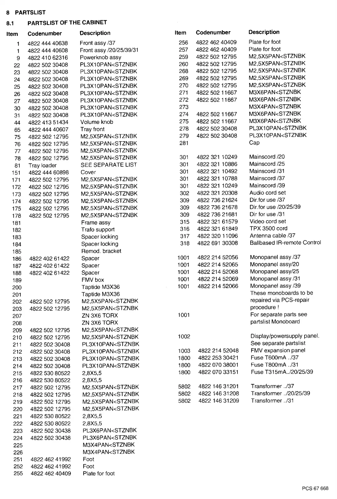 PARTSLIST OF