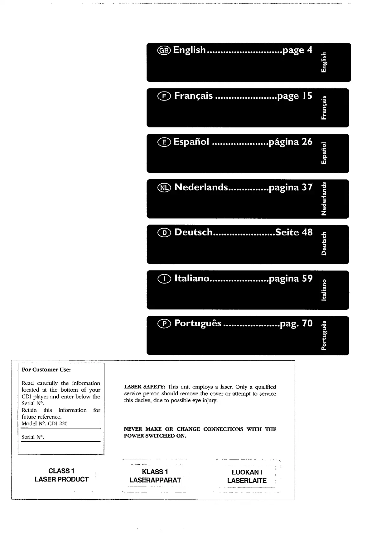 Espanol ..................... pagina 26