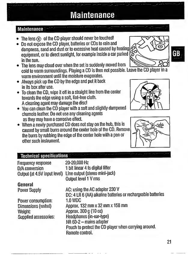 Philips CDP 200 - Maintenance and Care; Handling and Cleaning CDs; Cleaning the Player Unit; CD Hub Issues