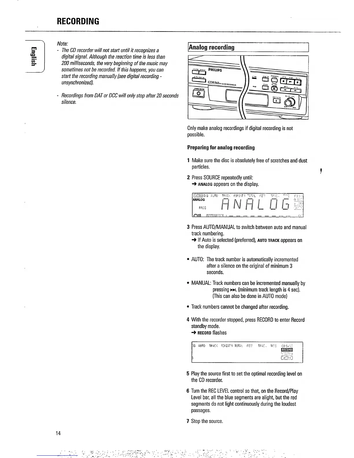 Philips CDR 560 - Analog Recording; Preparing for Analog Recording