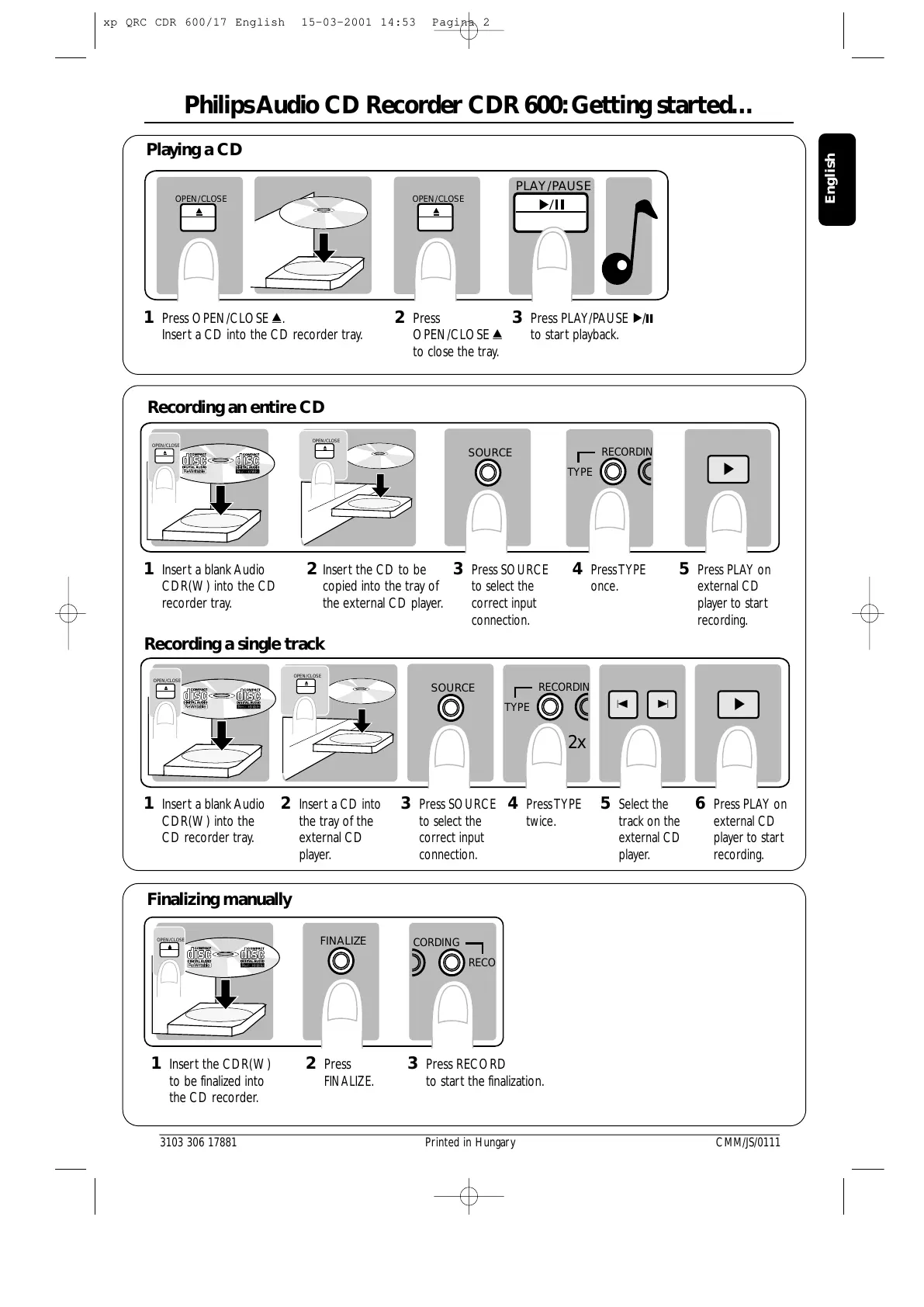 xp QRC CDR 600/17 English 15-03-2001 14:53 Pagina 2