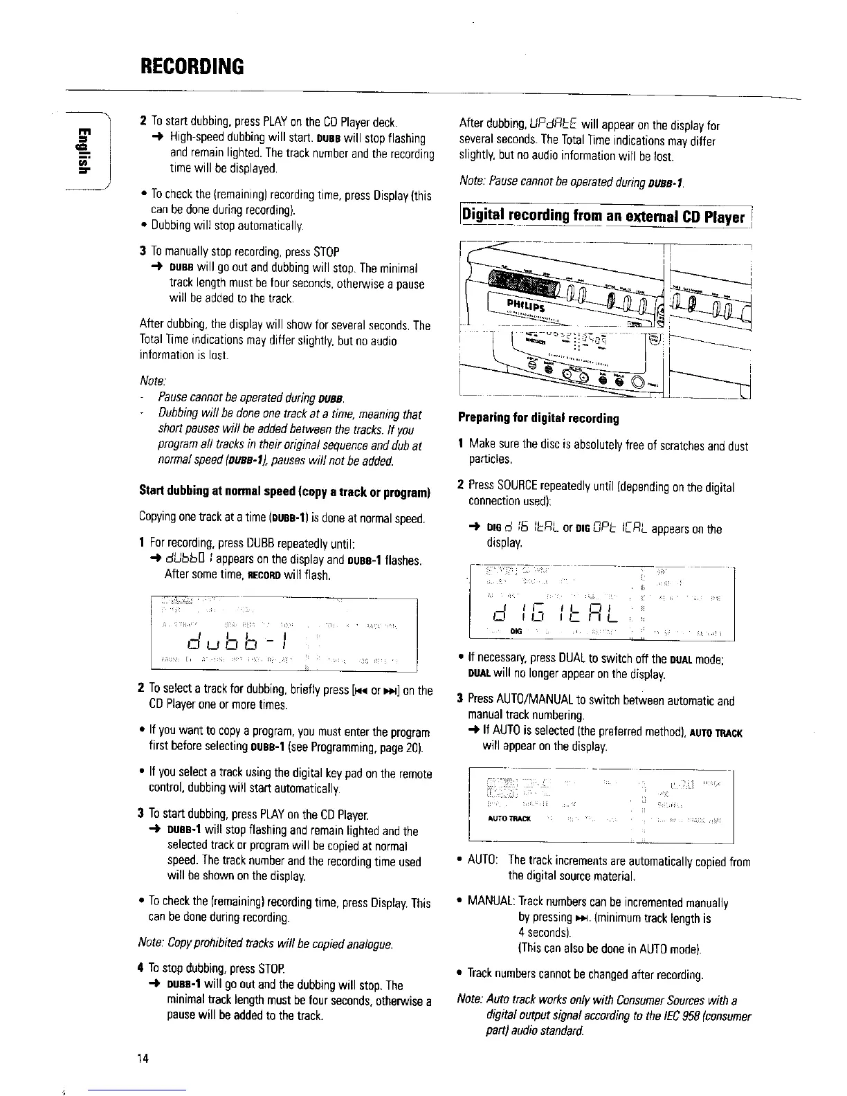 Note. Copyprohibited tracks will be copiedanalogue.