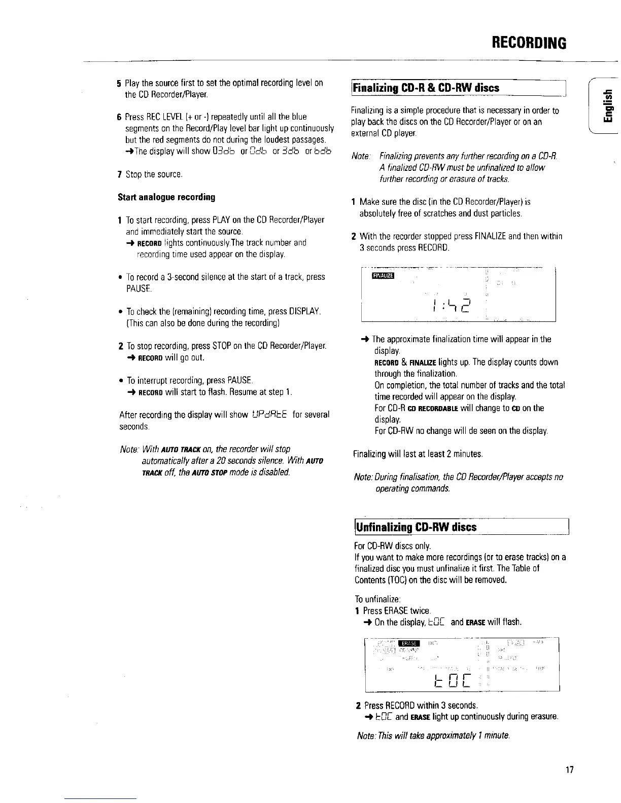 Note Finalizingpreventsanyfurther recordingona CD-R.