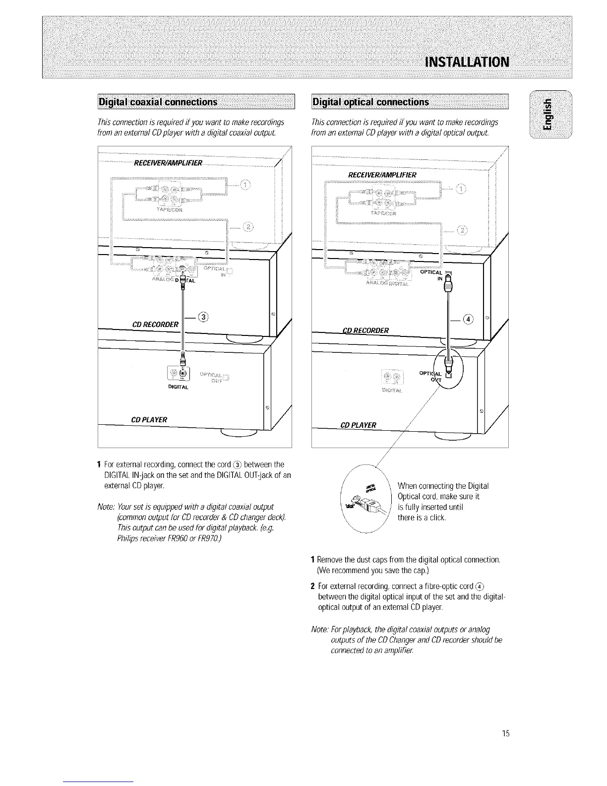 1 Removethe dustcapsfromthe digital opticalconnection.