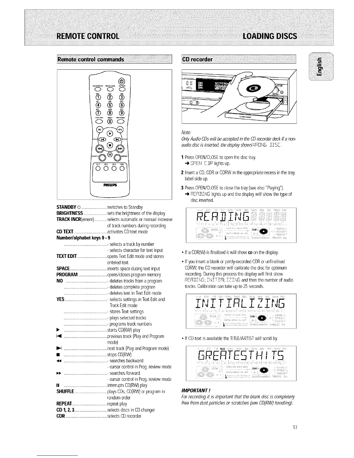 Forrecordingit isimportantthat theblankdiscis completely