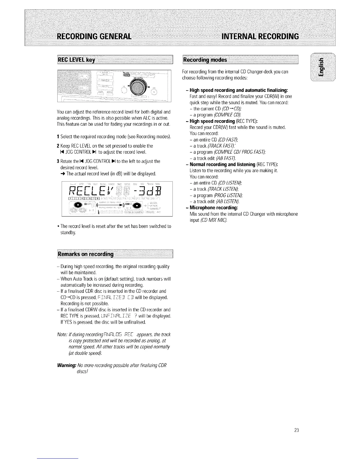 Forrecordingfromthe internalCDChanger-deckyoucan
