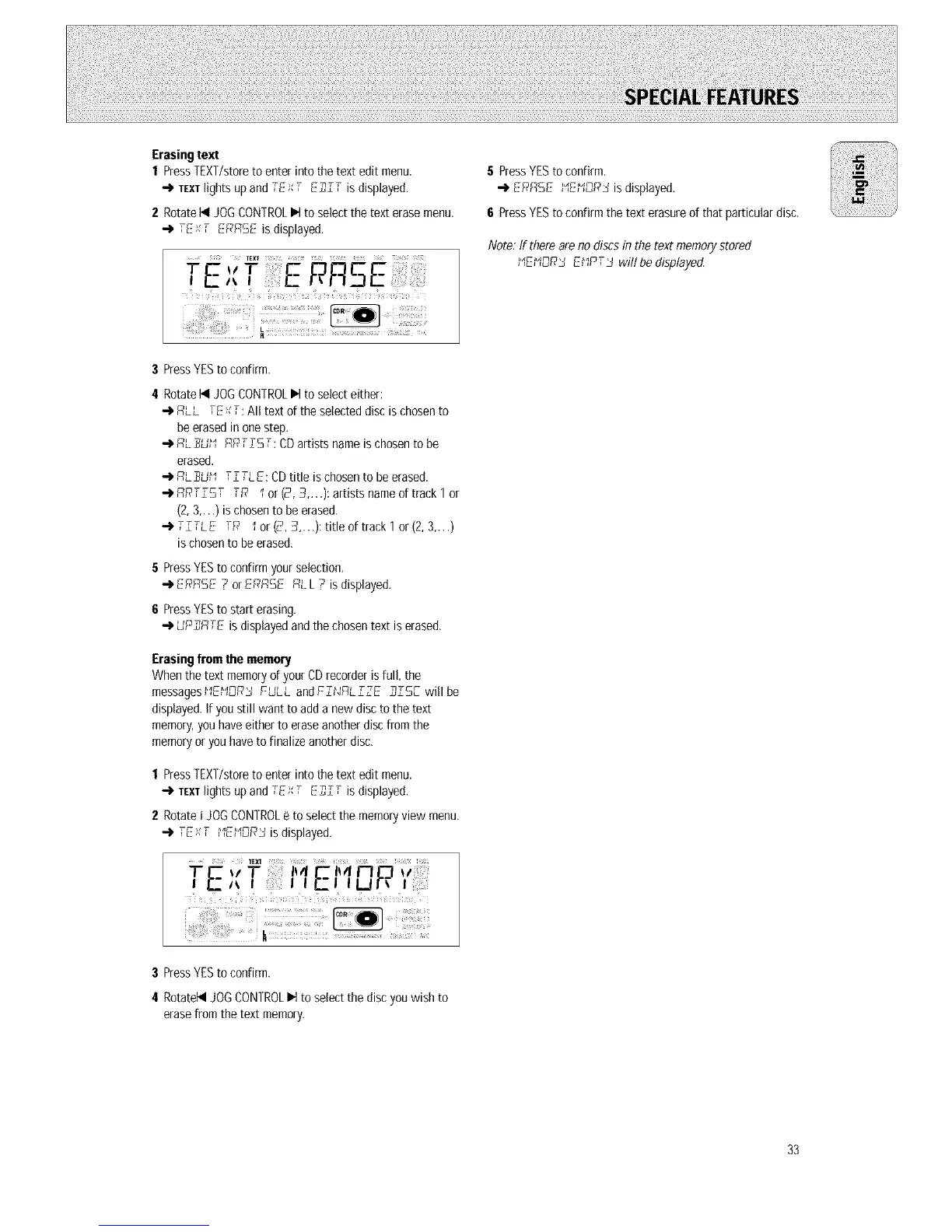 6 PressYESto confirmthe text erasureof that particulardisc,