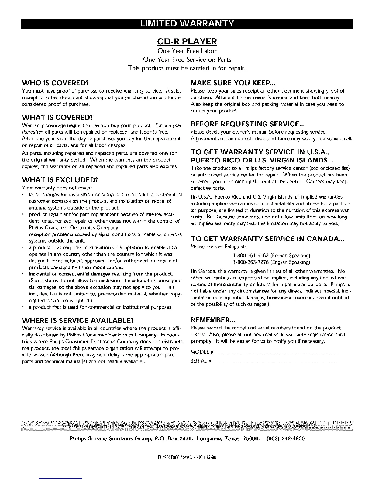 cially distributed by Philips Consumer Electronics Company. In coun-