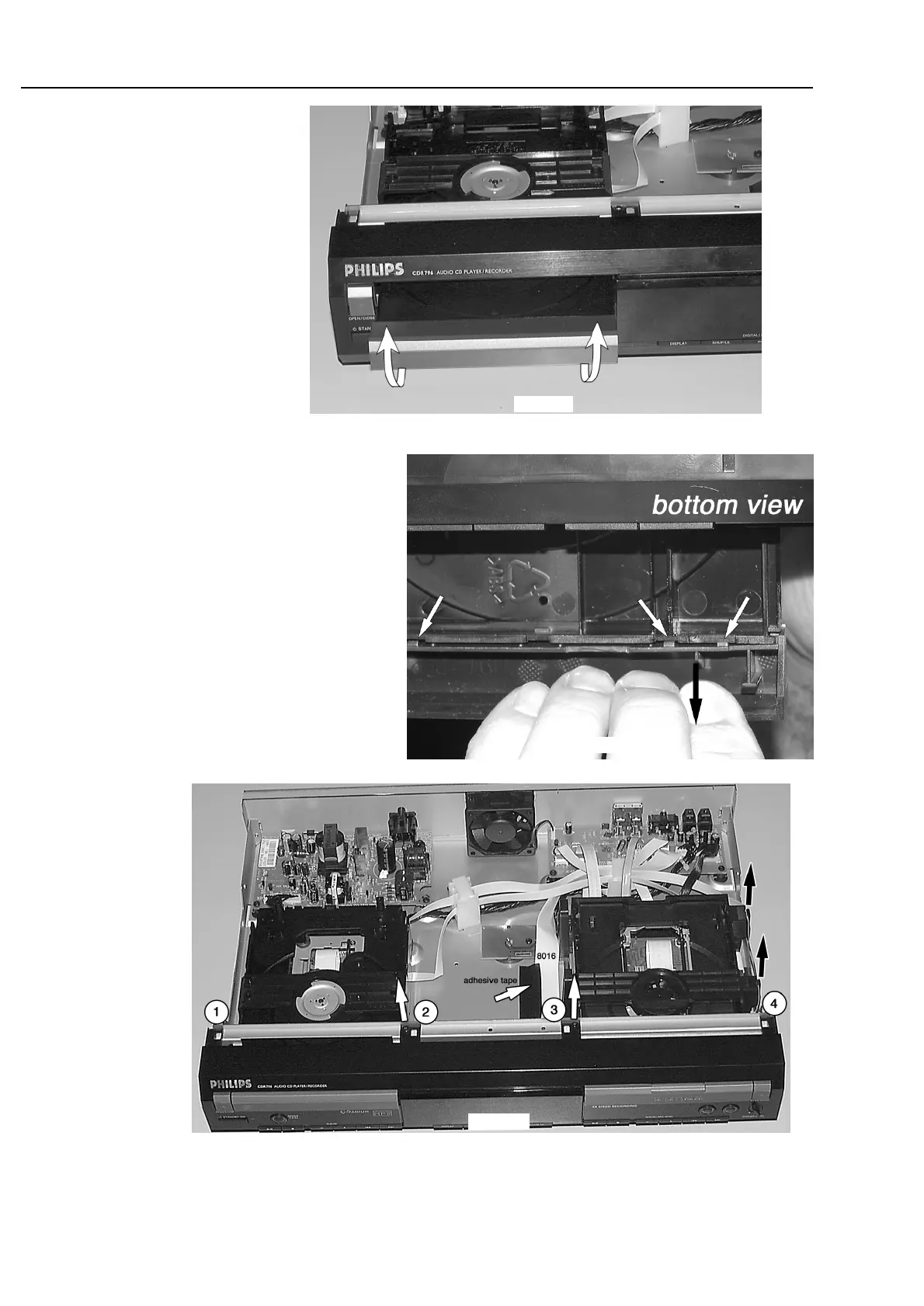 • Remove adhesive tape from cable 8016 and take cable to Headphone Board out of its guidings on the right