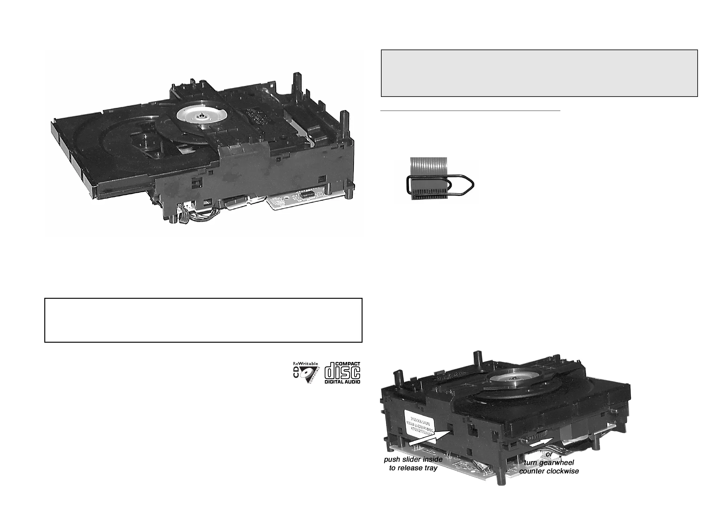 CHARGED CAPACITORS ON THE SERVO BOARD MAY DAMAGE THE CD DRIVE ELECTRONICS WHEN