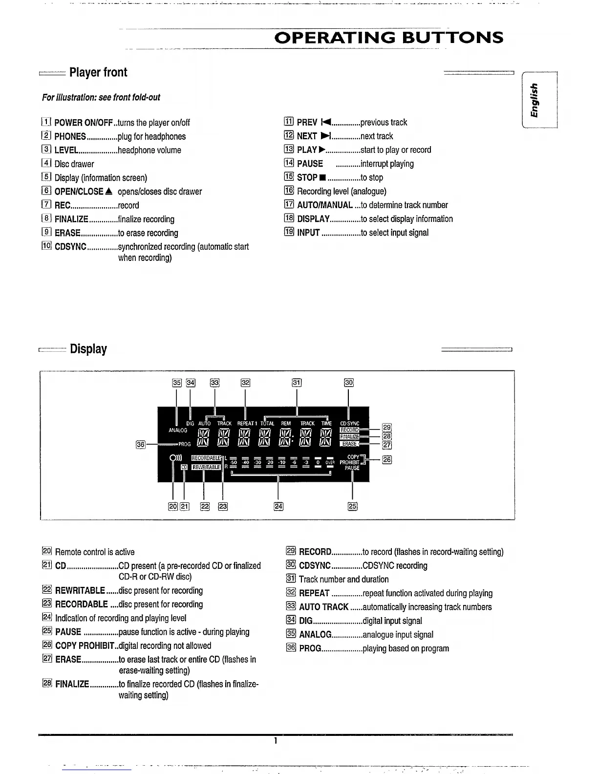 Philips CDR870/17 - Operating Buttons and Display; Front Panel Controls; Display Screen Indicators