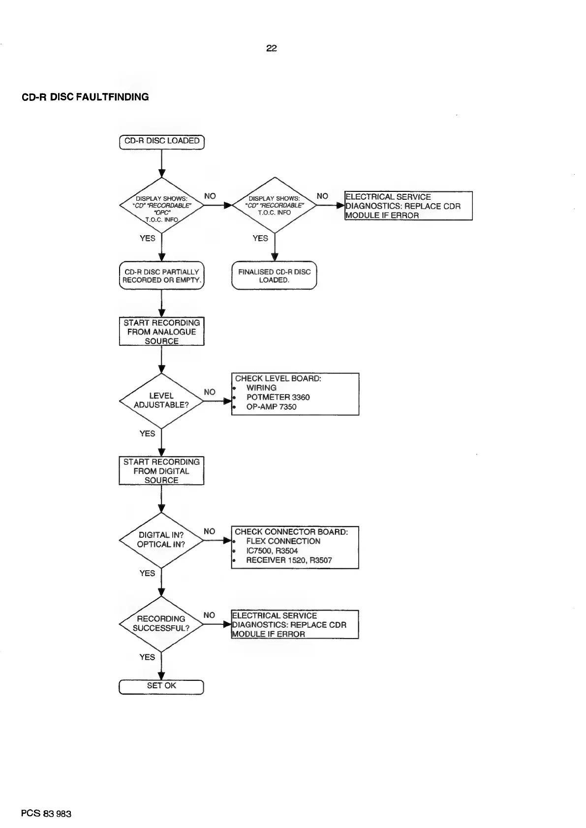 Philips CDR880 - Display Panel Measurement Procedures; Voltage Supply Measurements; Oscillator Frequency Check; Control Line Checks