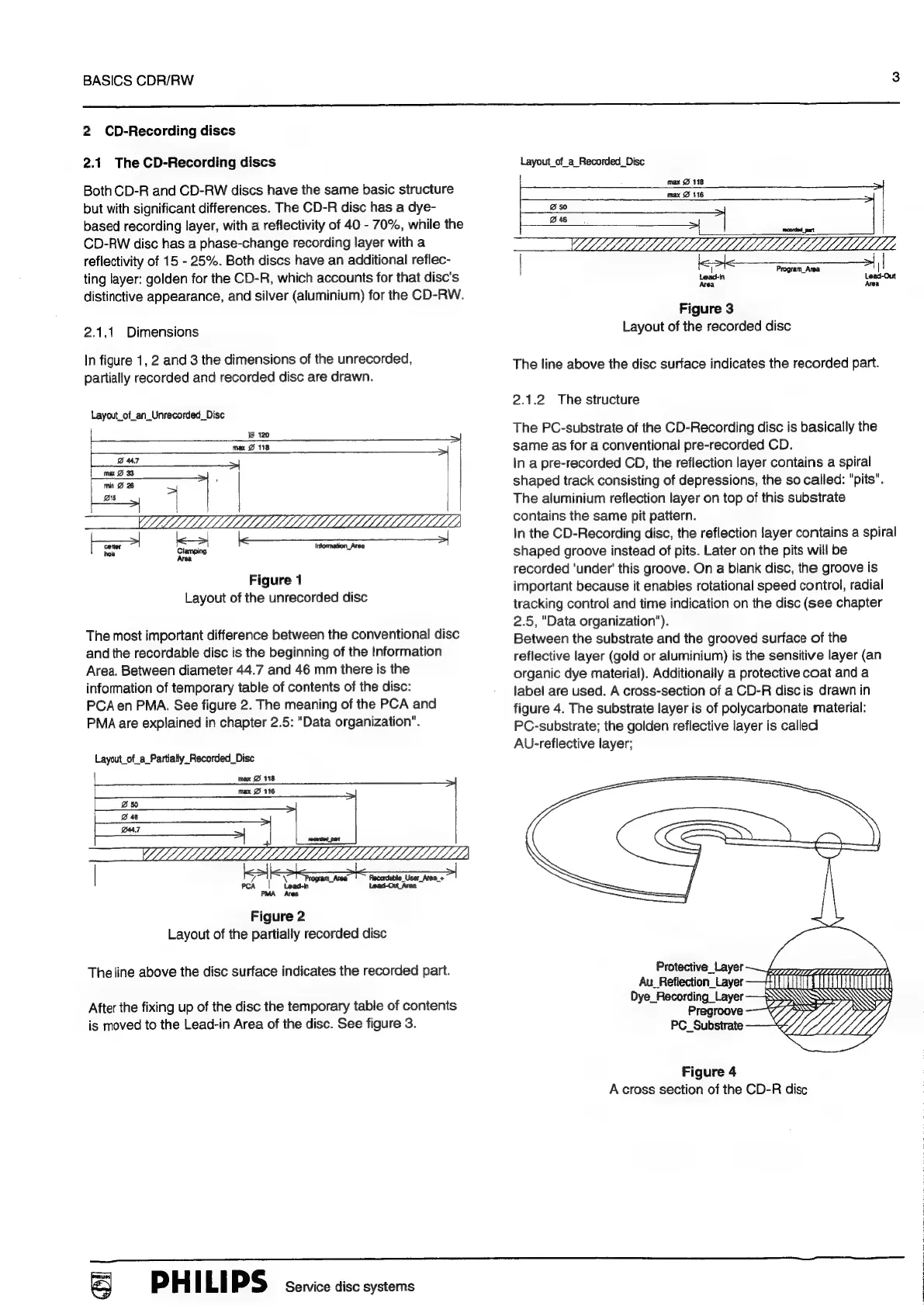 Philips CDR880 - CD-Recording Disc Details; CD-Recording Disc Structure; Disc Dimensions; CD-R Disc Structure Details