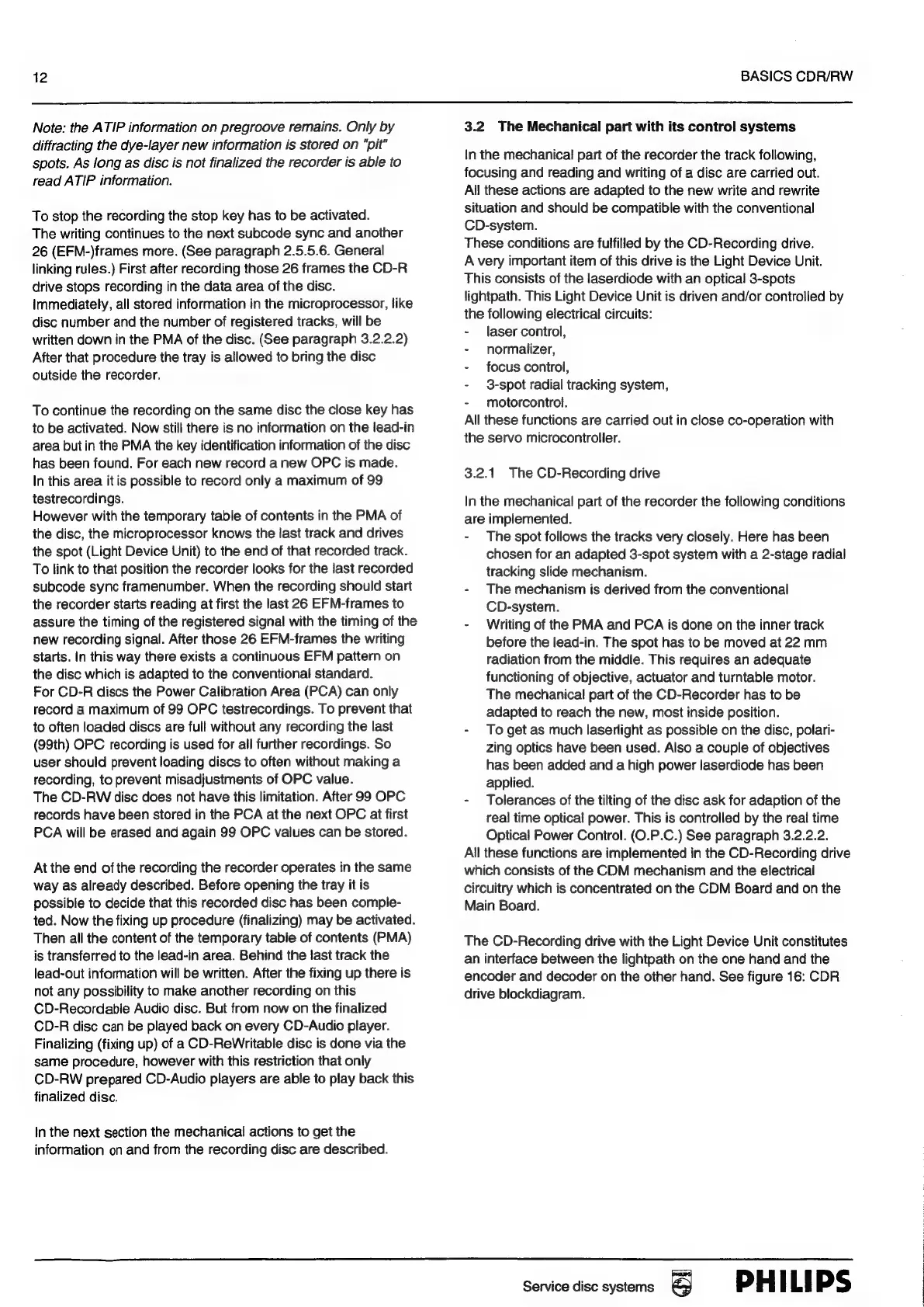 Philips CDR880 - Mechanical Part and Control Systems; CD-Recording Drive Mechanics; CDM Mechanism Functions; 3-Spots Push Pull Tracking System