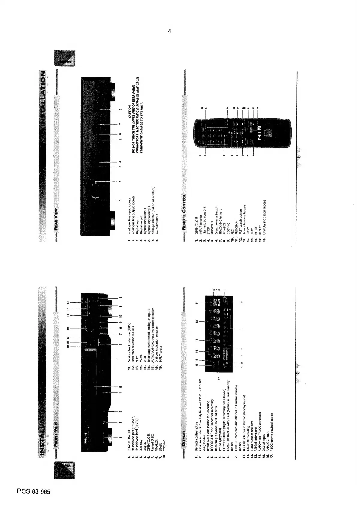 Philips CDR880 - Unit Overview and Controls; Front Panel Controls and Connections; Rear Panel Connectors; Remote Control Identification