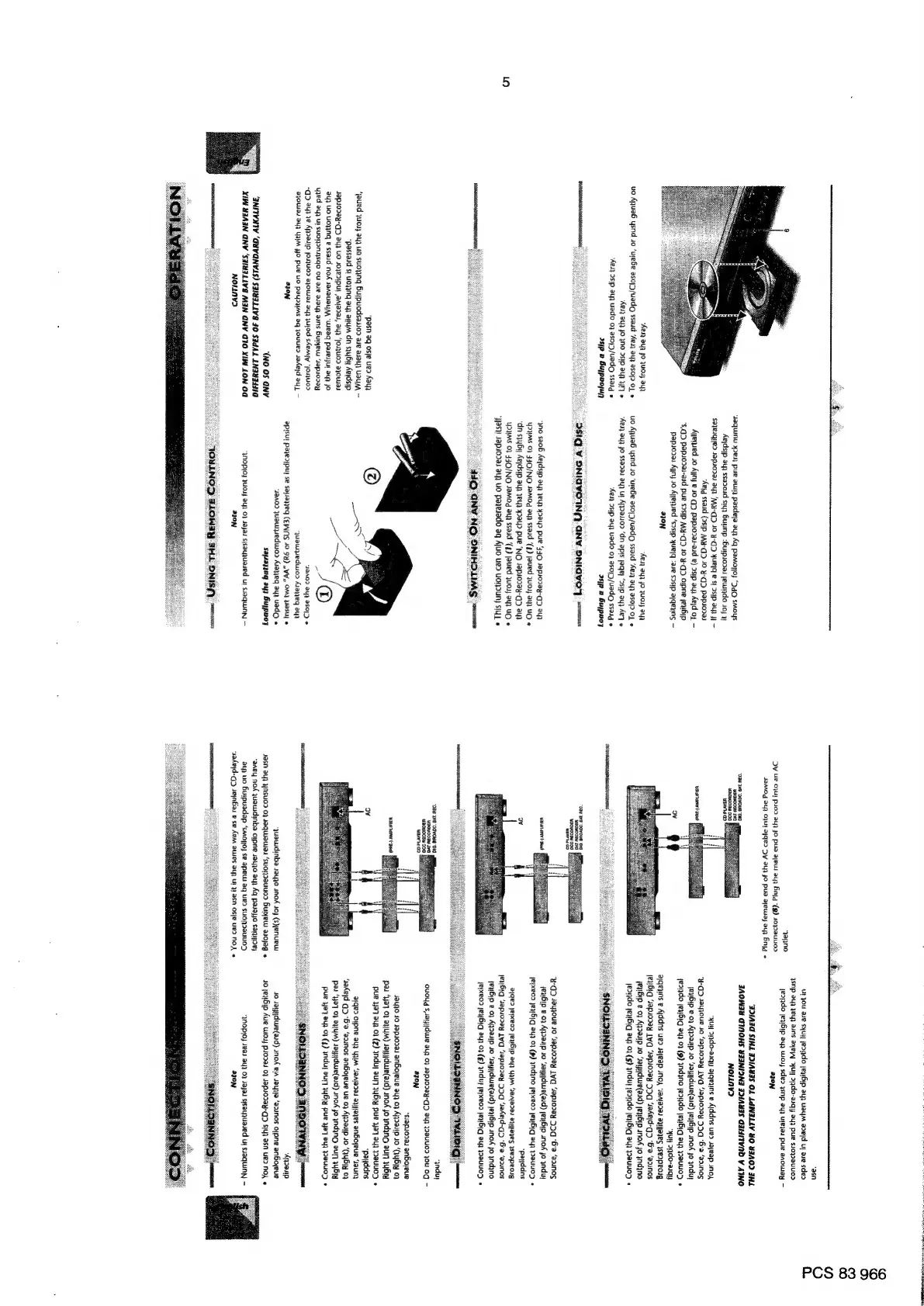 Philips CDR880 - Connections and Operation Procedures; Analogue and Digital Audio Connections; Remote Control Usage
