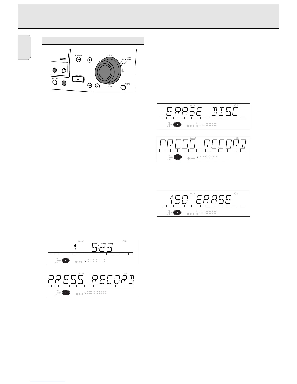playing time. ERASE DISC and PRESS RECORD