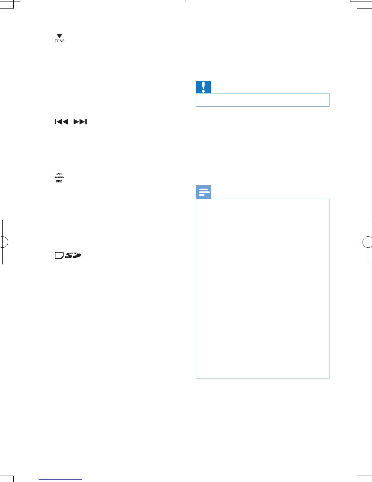 • Press and hold to rewind a track or
