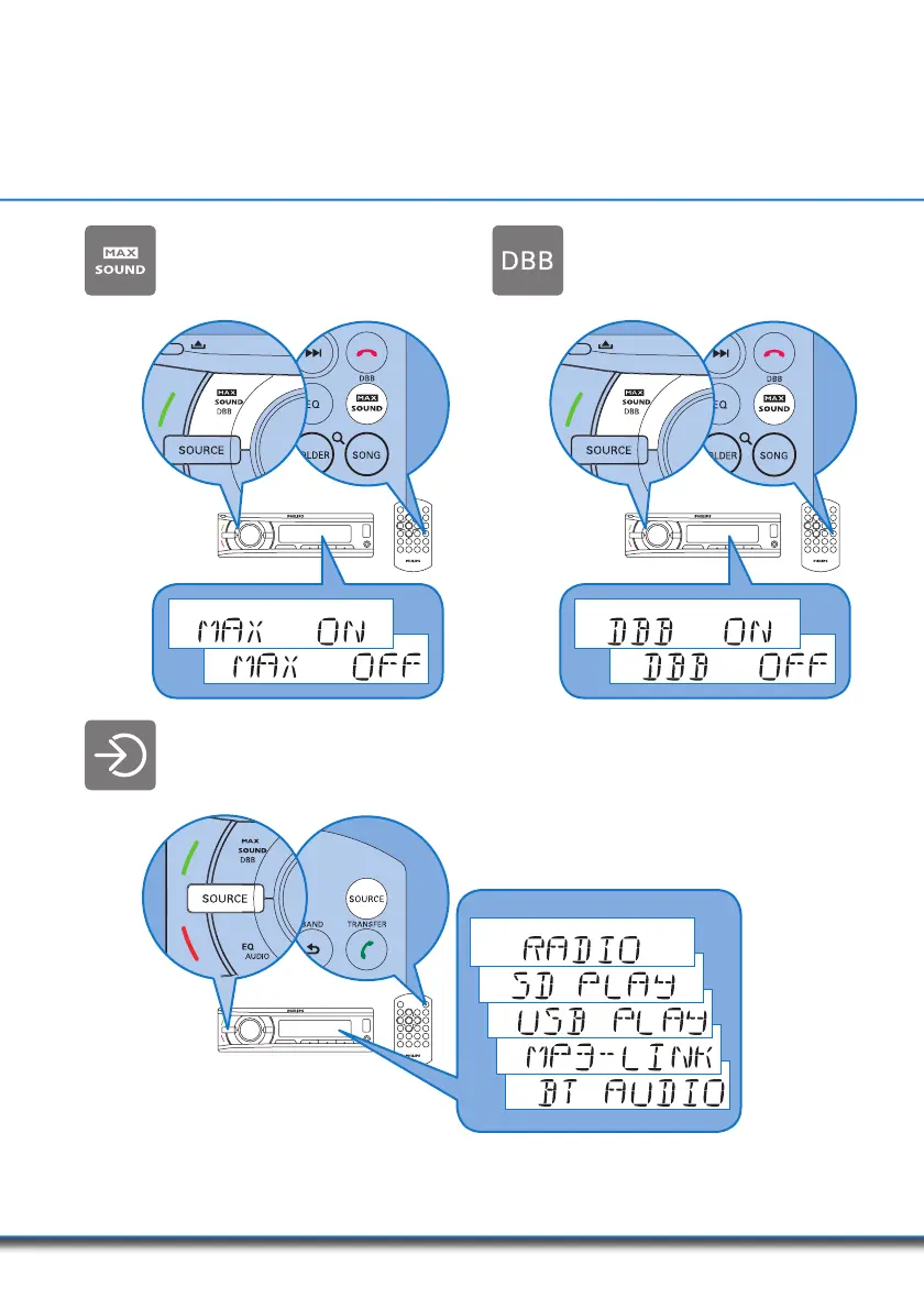 Philips CE150 - Maximizing volume; Dynamic Bass Boost; Source