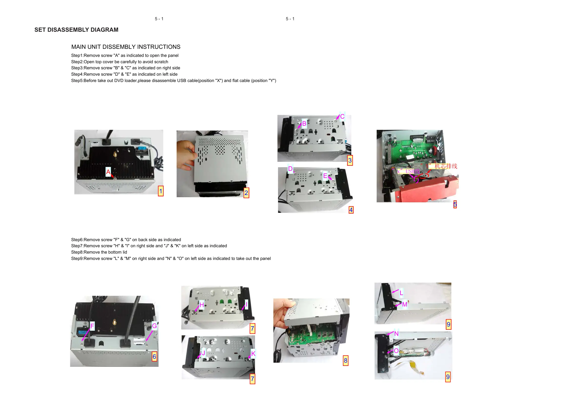 MAIN UNIT DISSEMBLY INSTRUCTIONS