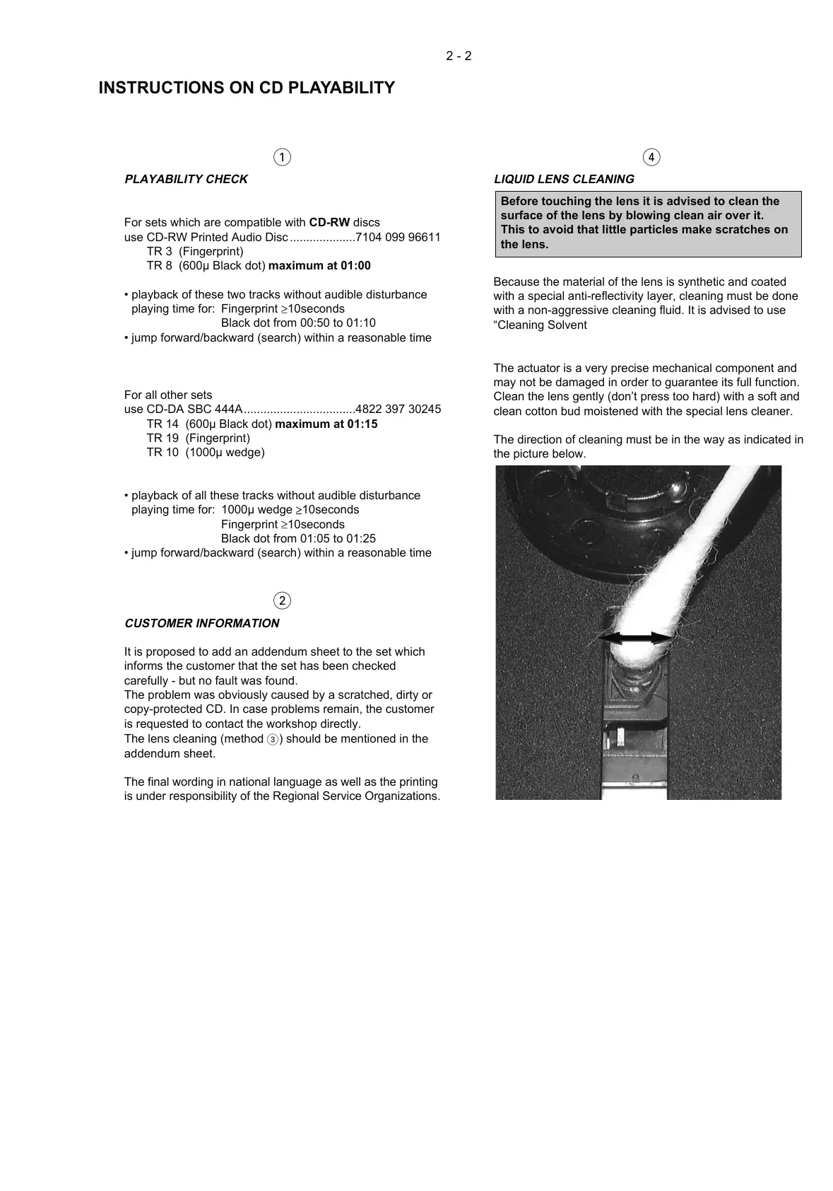 INSTRUCTIONS ON CD PLAYABILITY