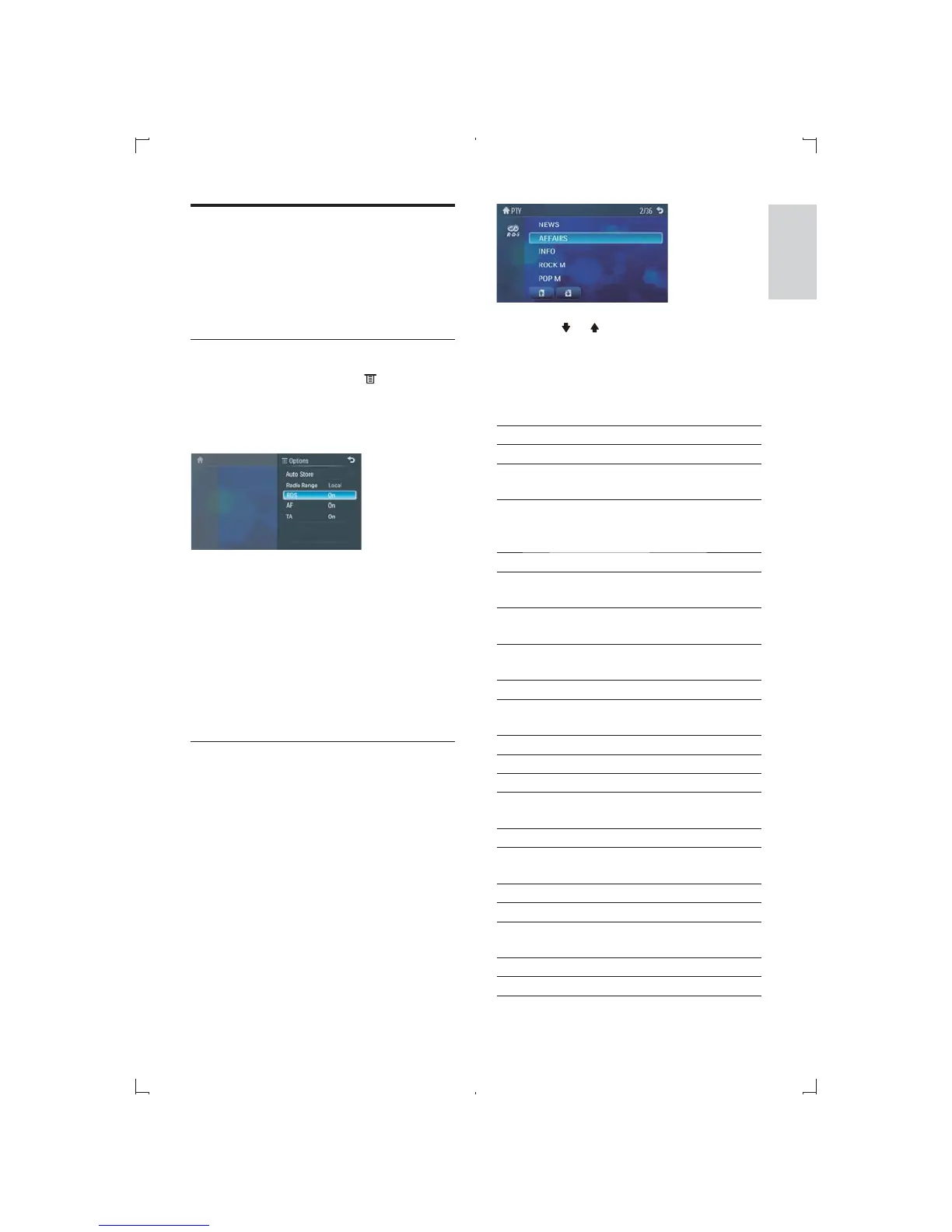 signals. If you tune to an RDS station, an RDS
