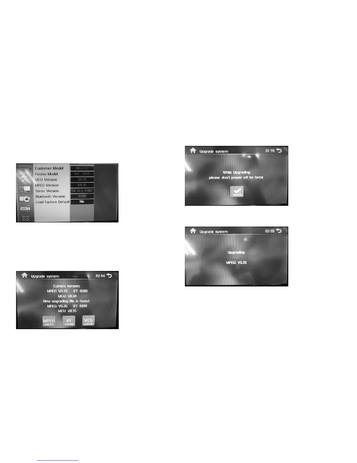 Upgrade Files: MPEG.BIN MCU.BIN BT.BIN