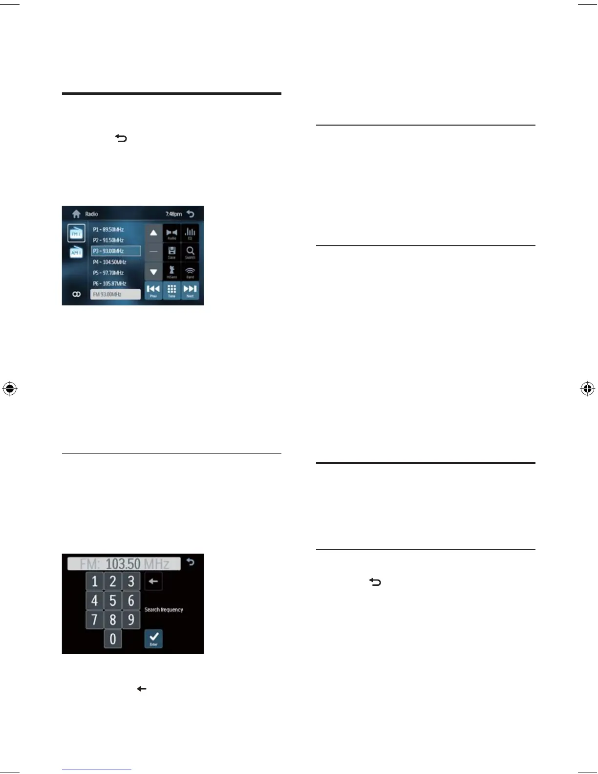 4 Briefl y touch [Previous] or [Next] to tune
