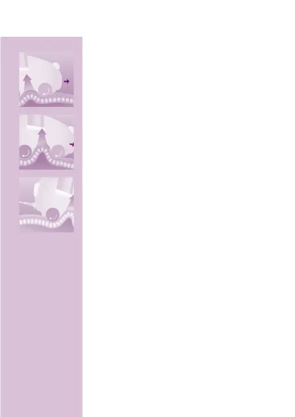 ◗ Prednji valj nežno dvigne kožo in jo vodi v
