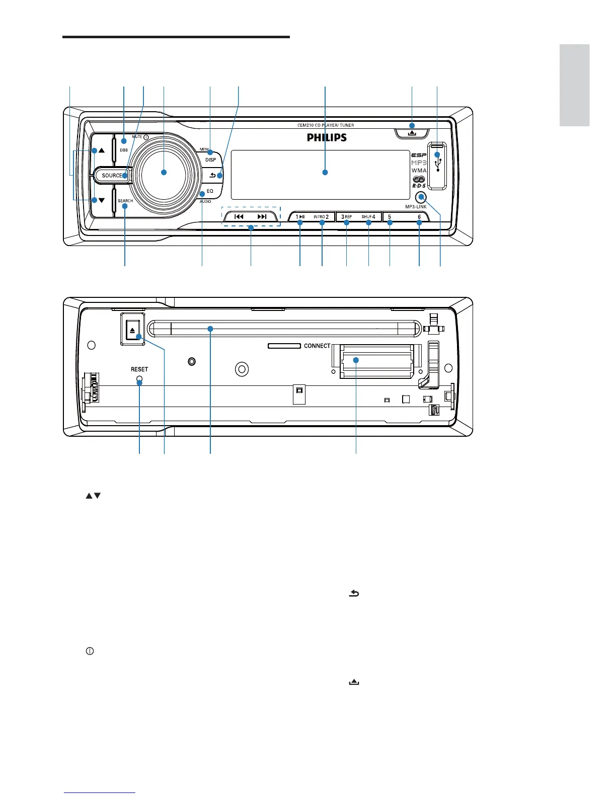 Turn the unit on or off.•
