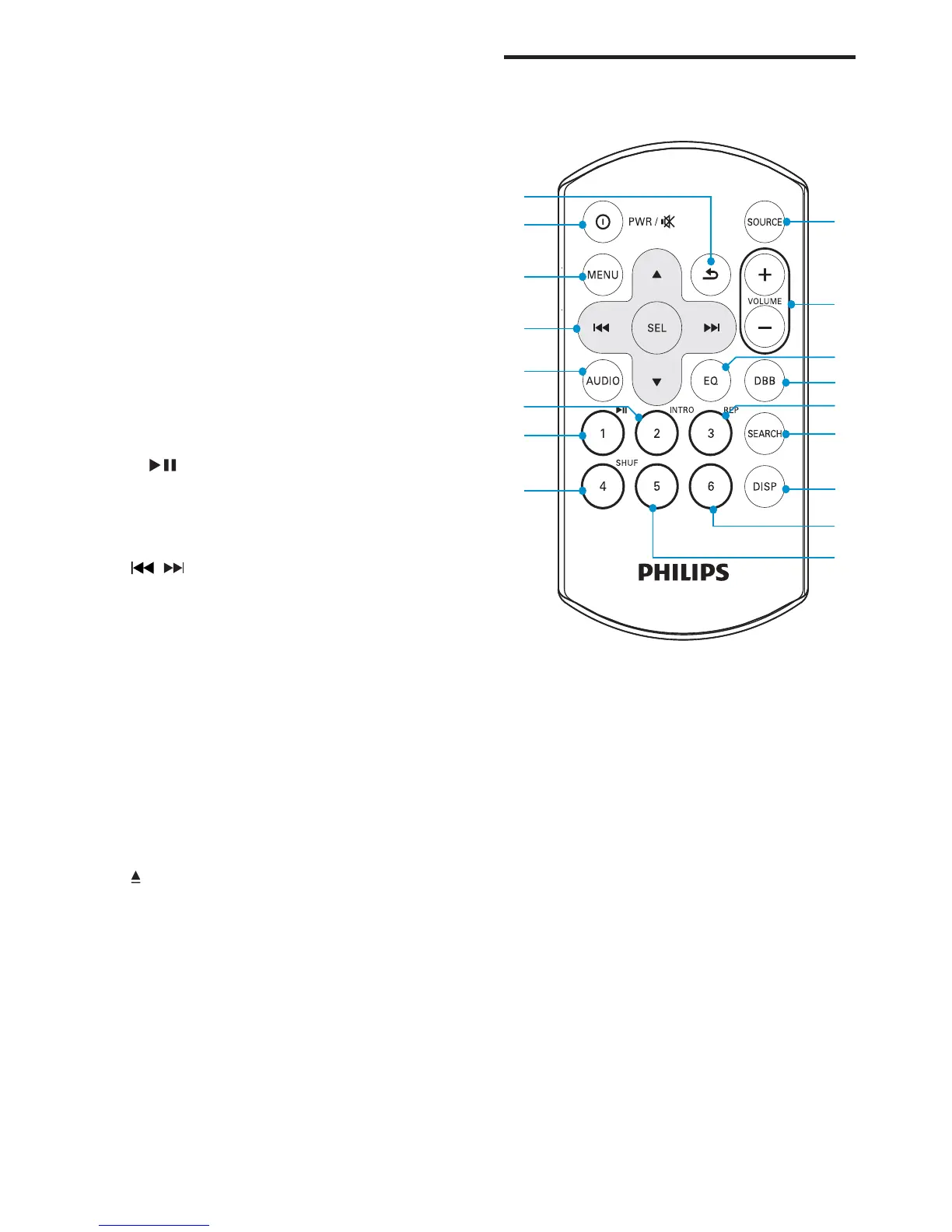 Activate or deactivate shuffle mode.•