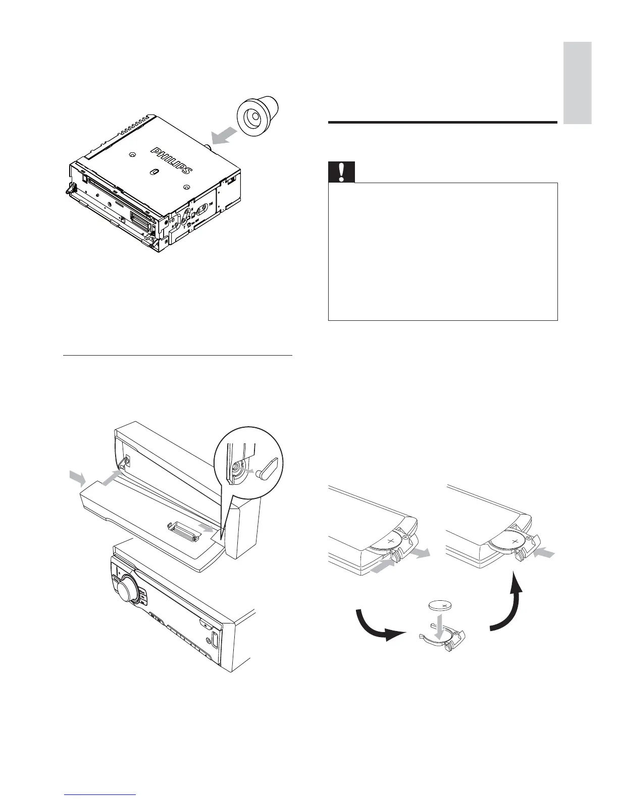 To replace the remote control battery: