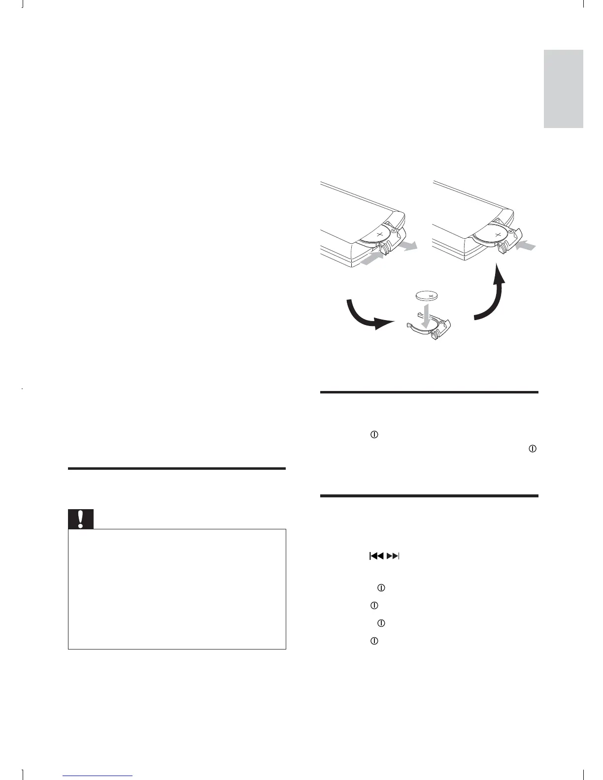 To replace the remote control battery: