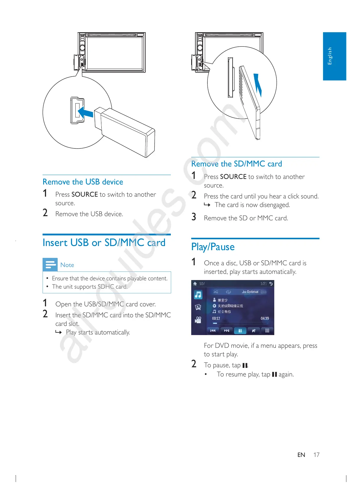 Insert USB or SD/MMC card