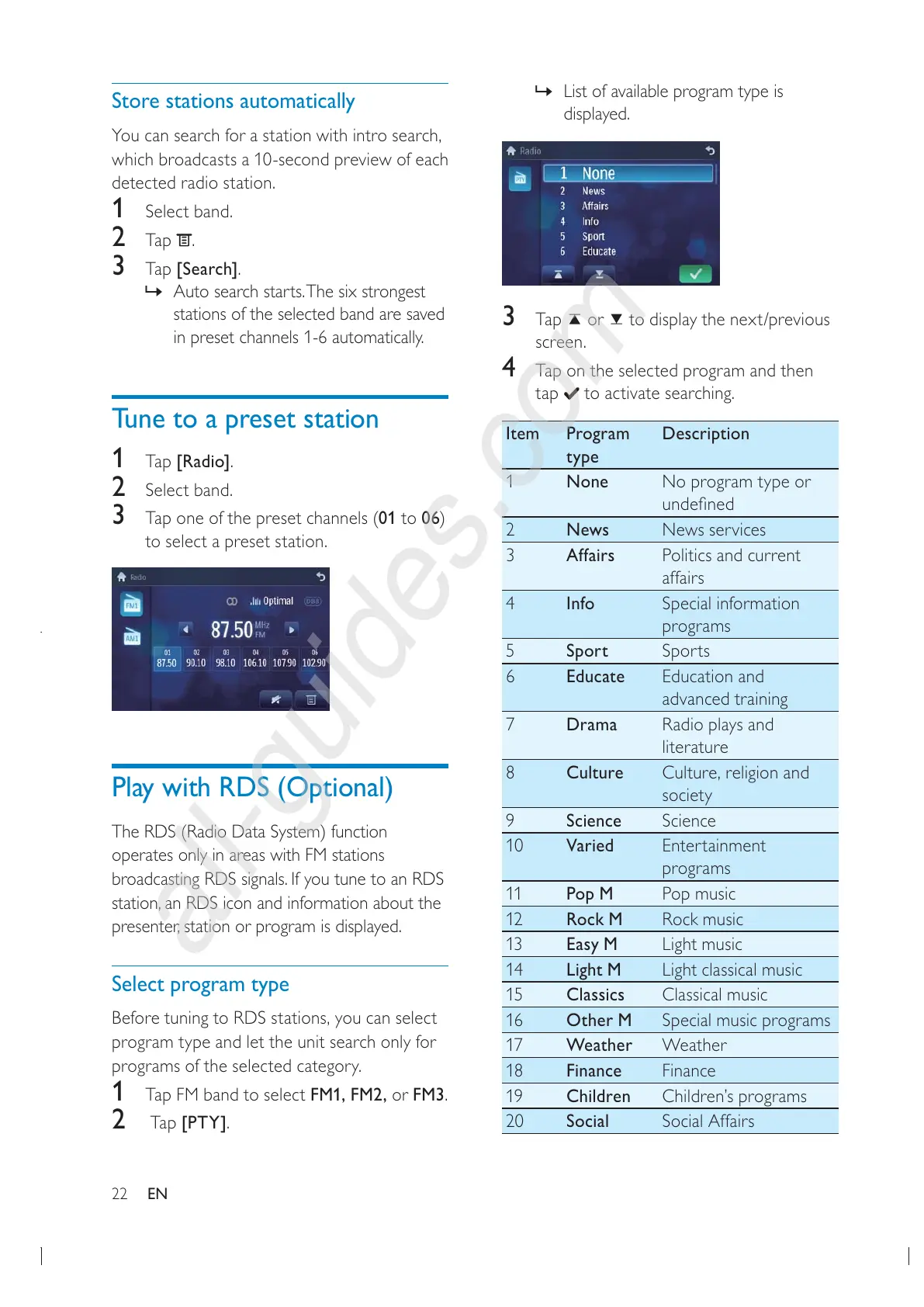The RDS (Radio Data System) function