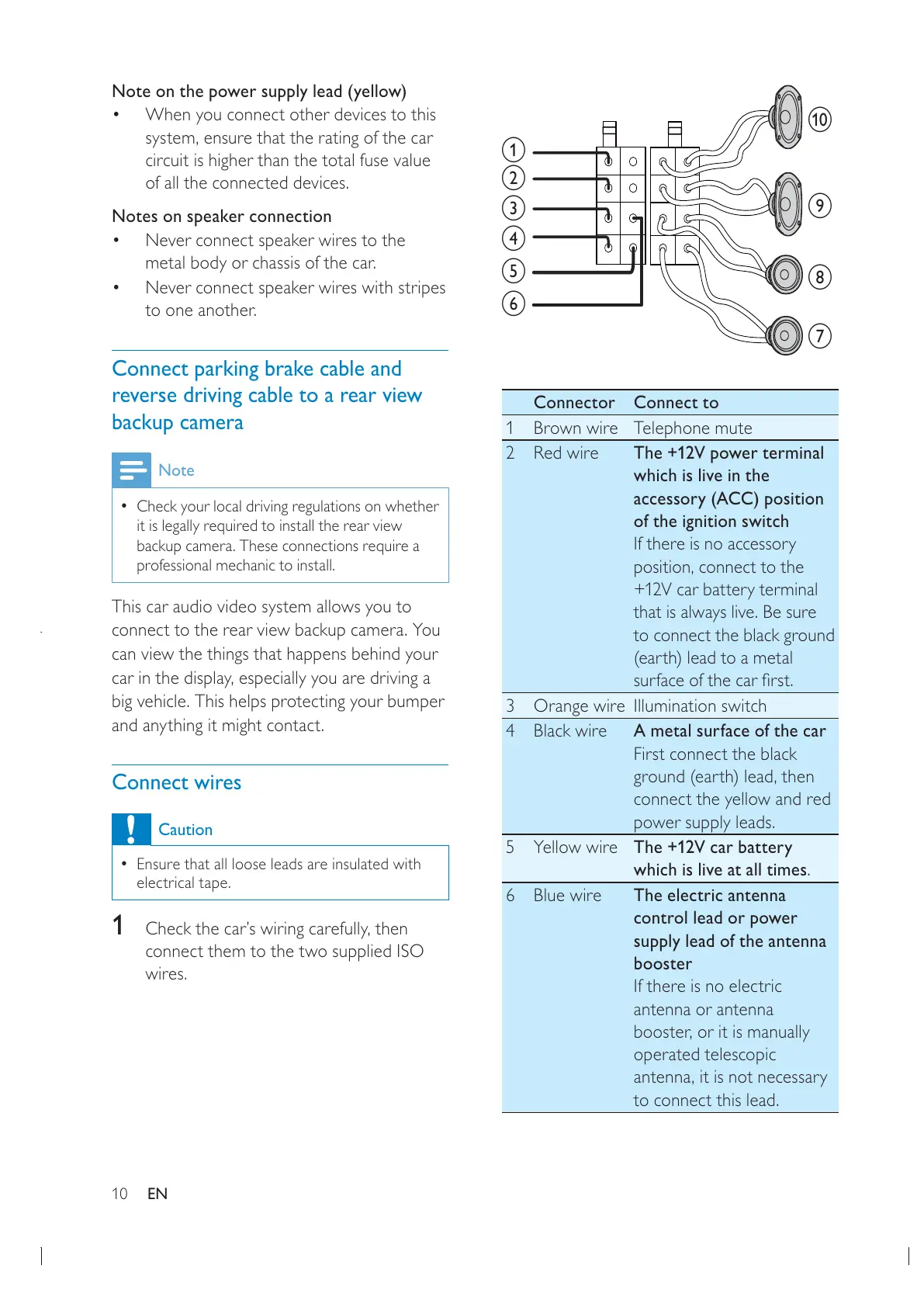 backup camera. These connections require a