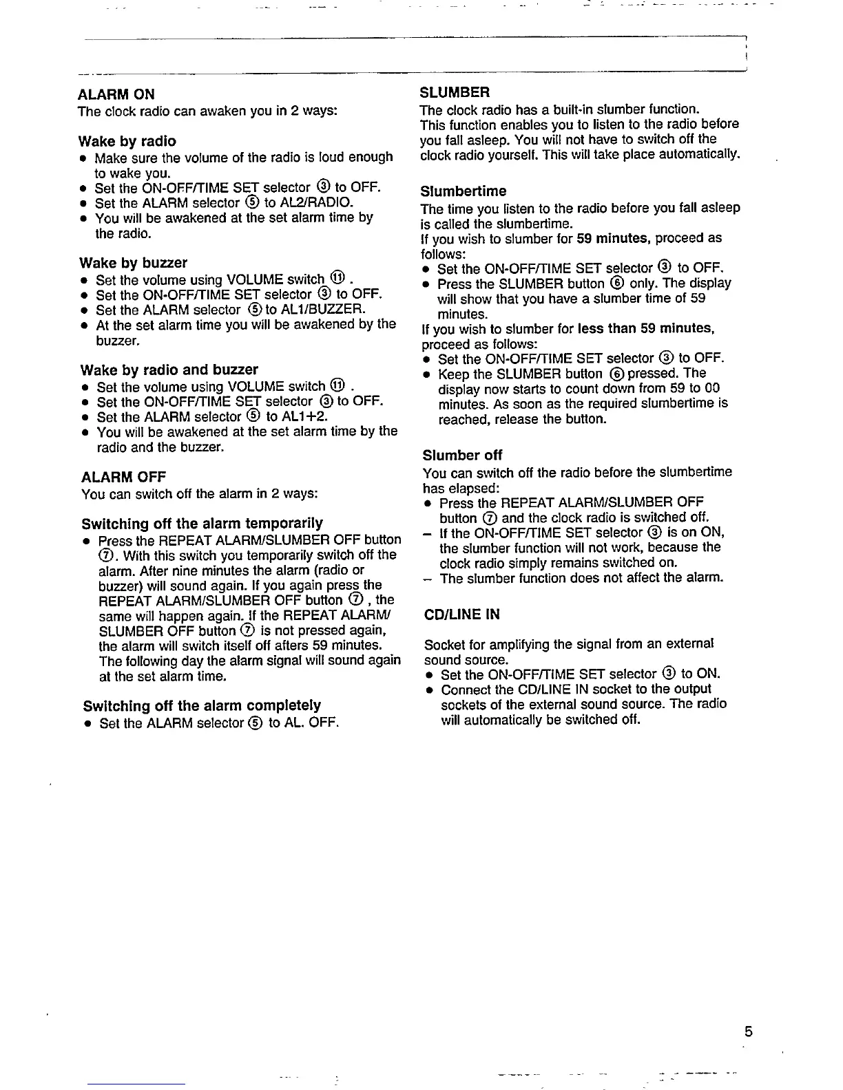 Philips Clock Radio - Advanced Features and Operation; Alarm Activation Modes; Alarm Off and Snooze Function; Slumber Function