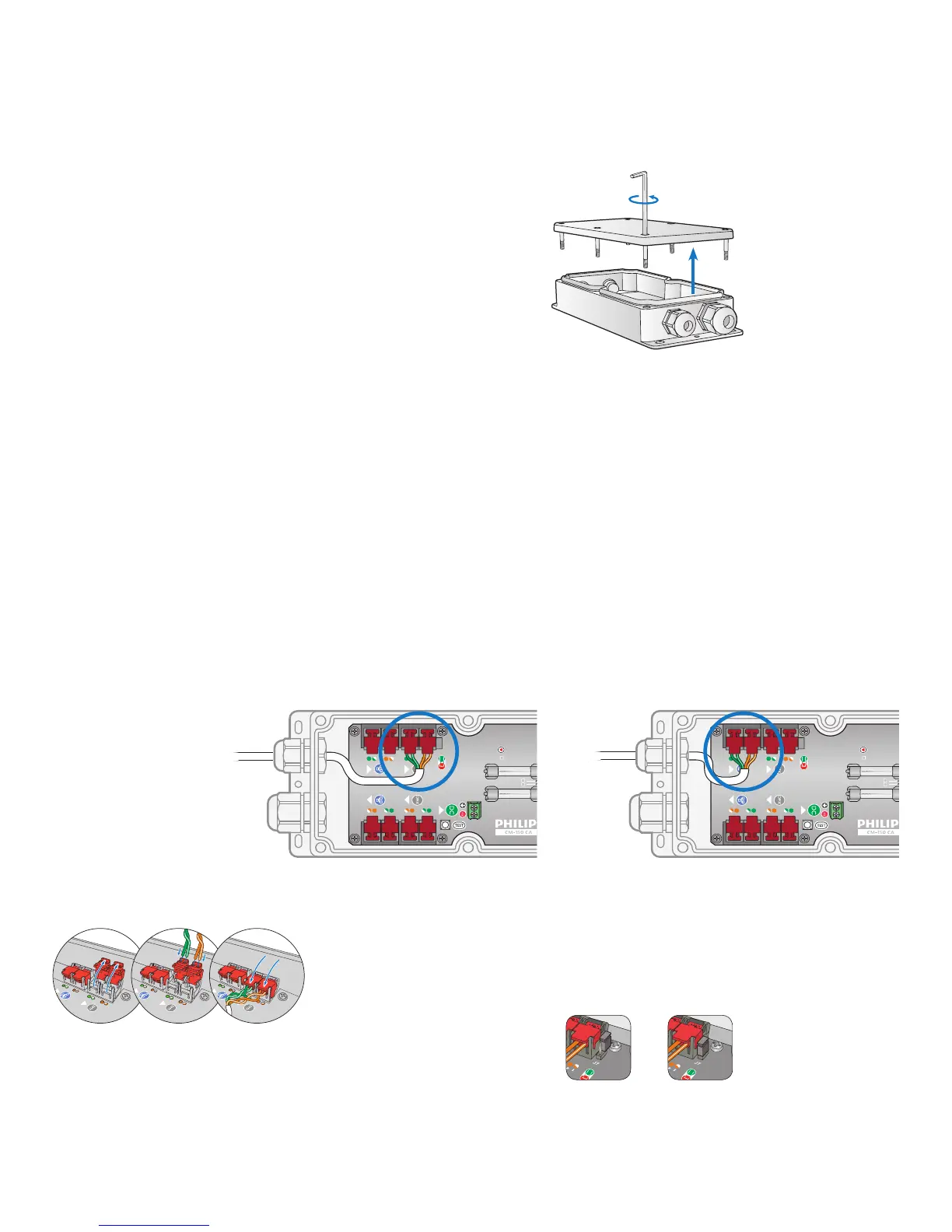 5. While holding the wires rmly in place, push down on the pivot connectors until