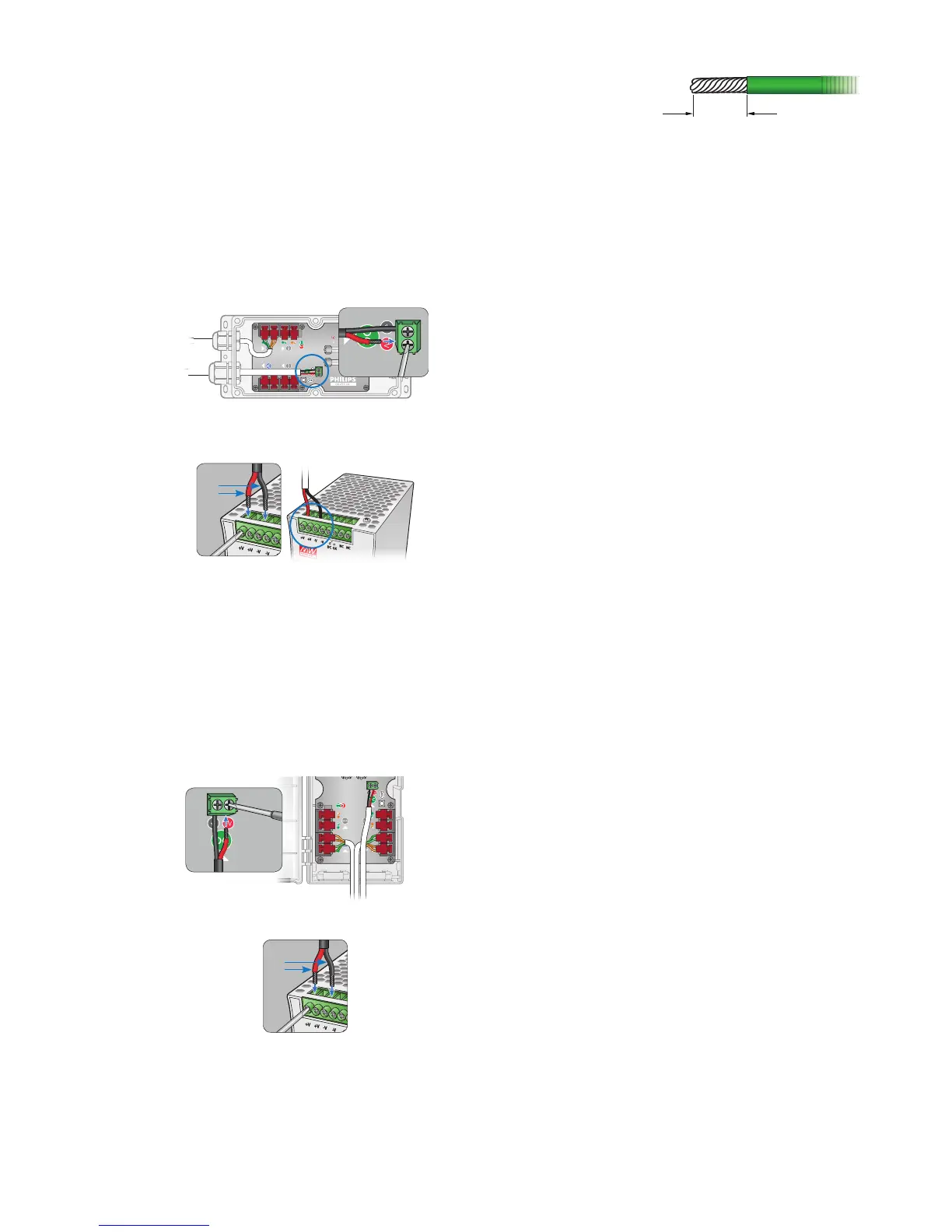 1. Strip 5 mm (0.2 in) of insulation from the wires. If using stranded wire, twist each