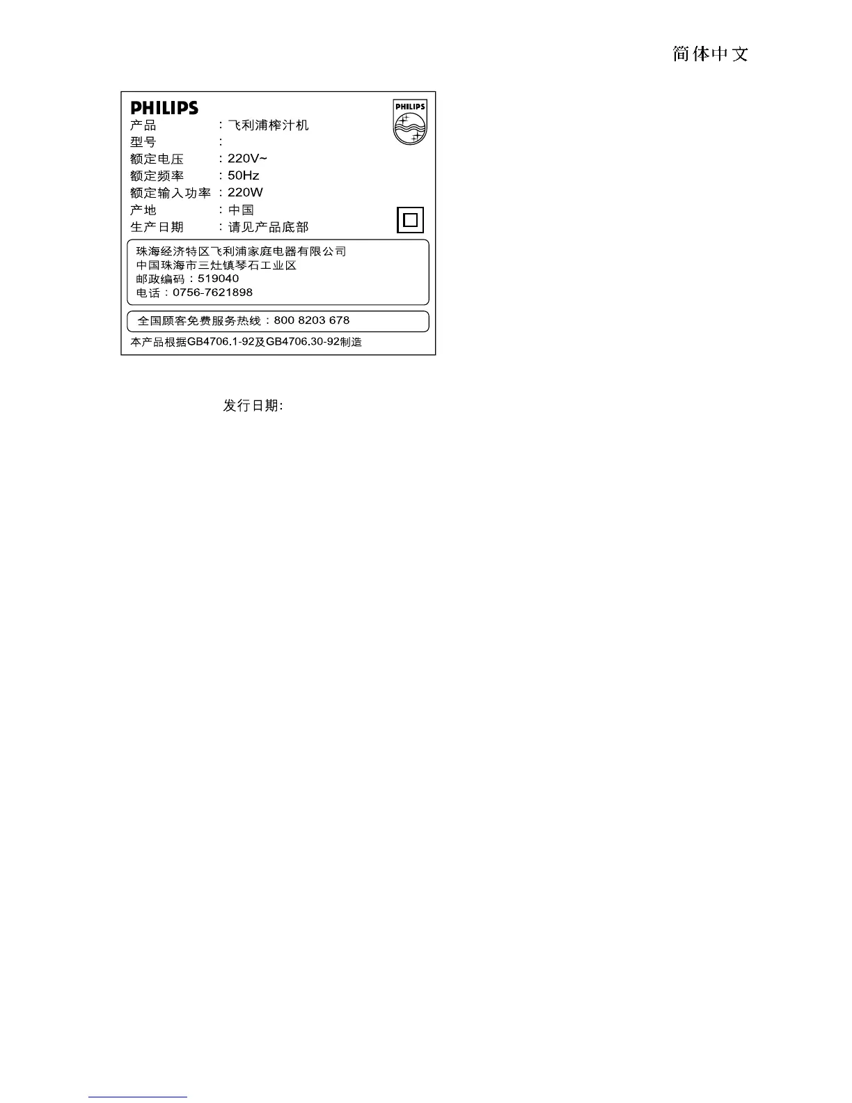 Philips Comfort HR1821
