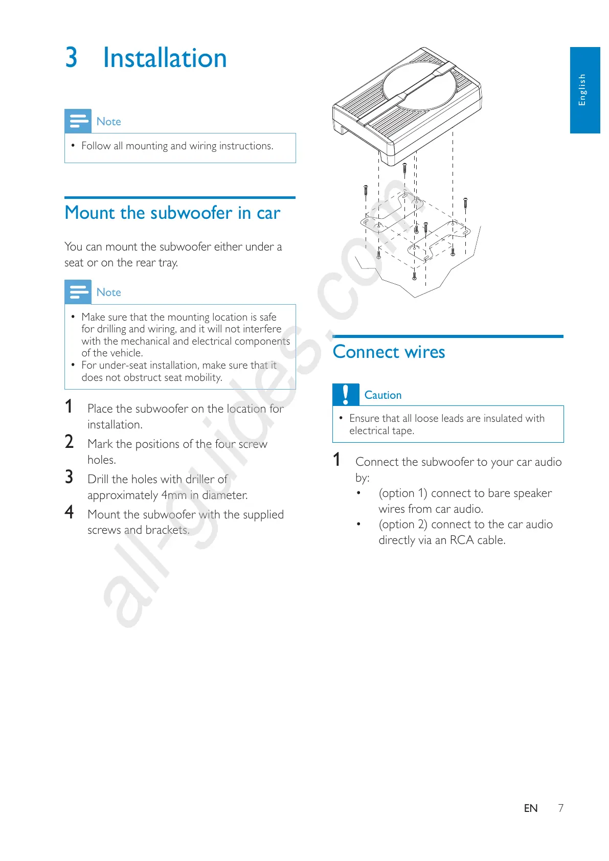 4 Mount the subwoofer with the supplied